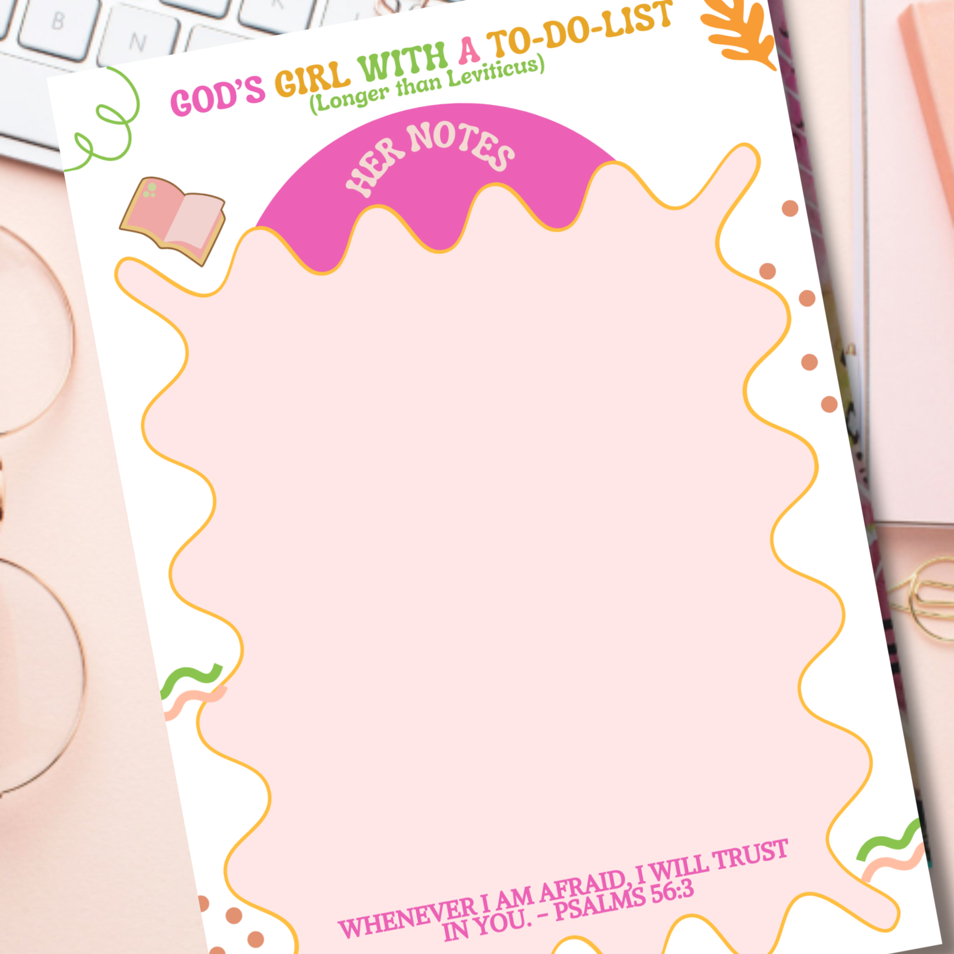 Stay motivated and organized with this Notepad Bible Verse - Psalm 56:3 - When I am afraid, I put my trust in you.